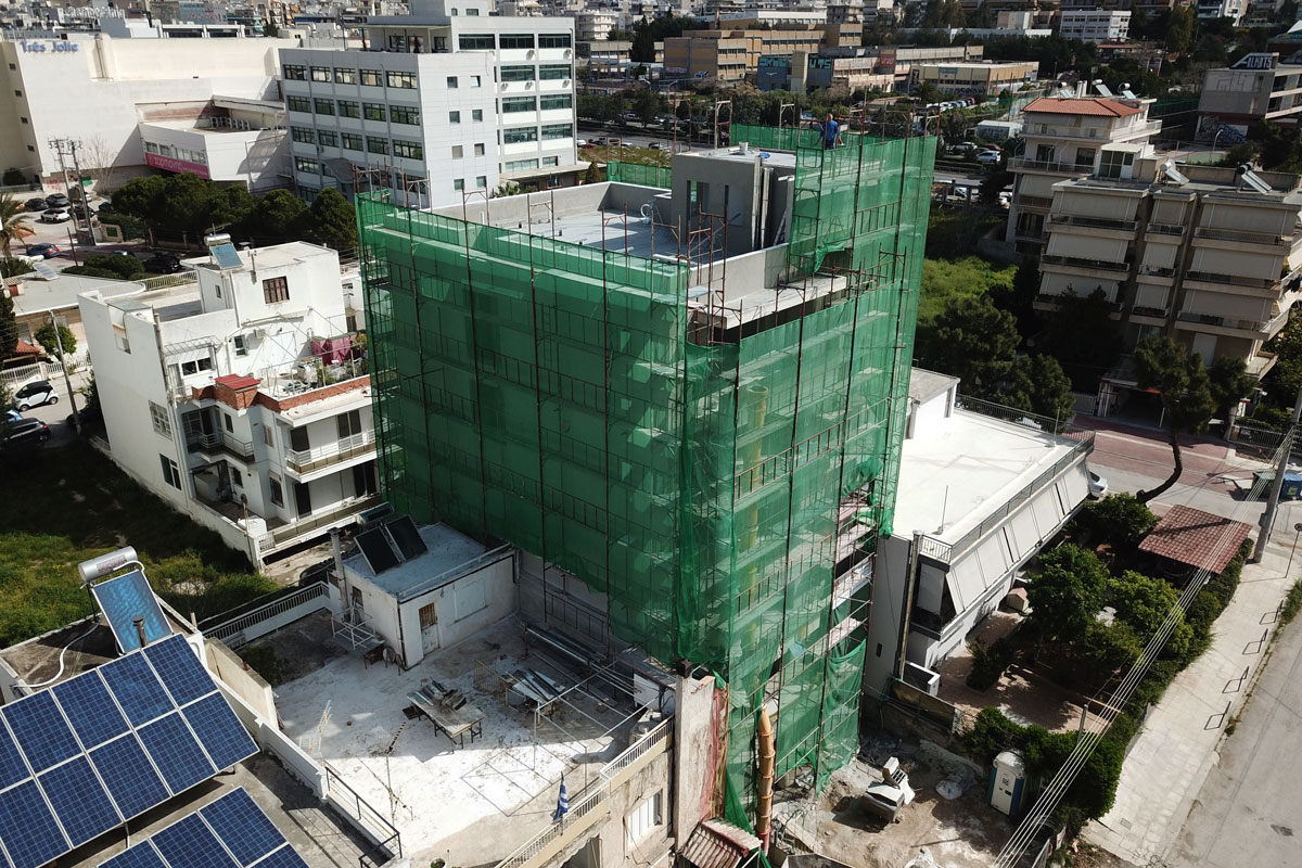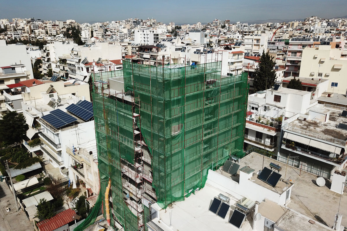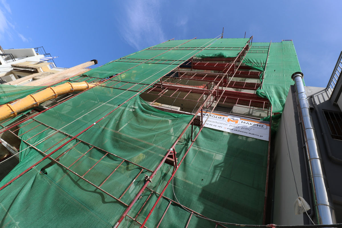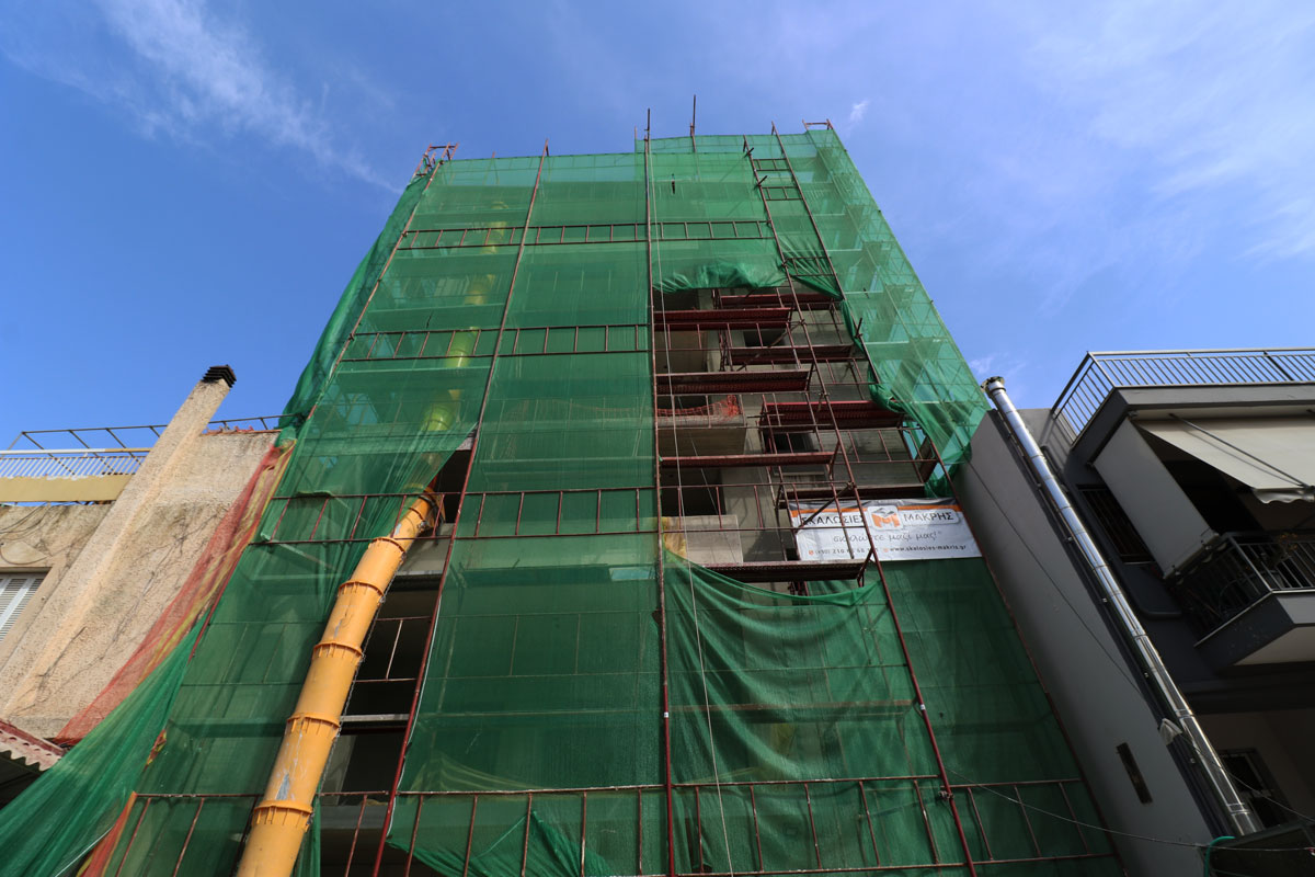 Σκαλωσιά στην περιοχή στον Άλιμο. Με μαδέρια και με λινάτσα.