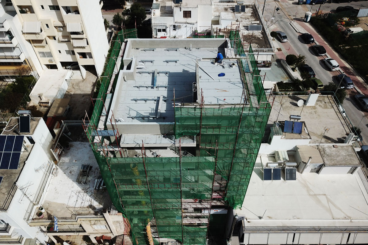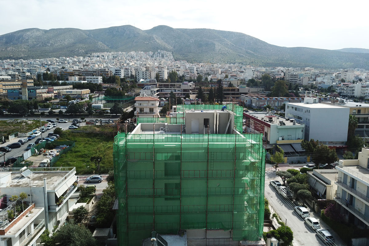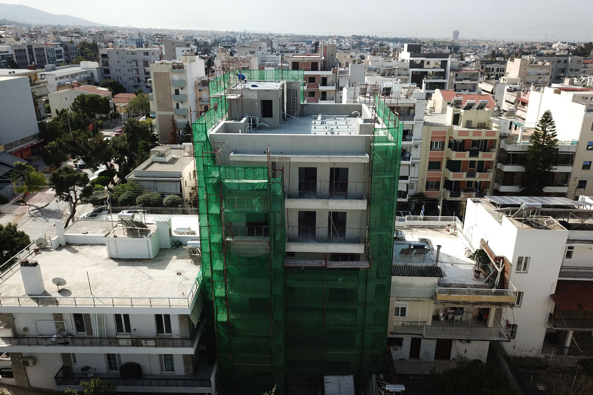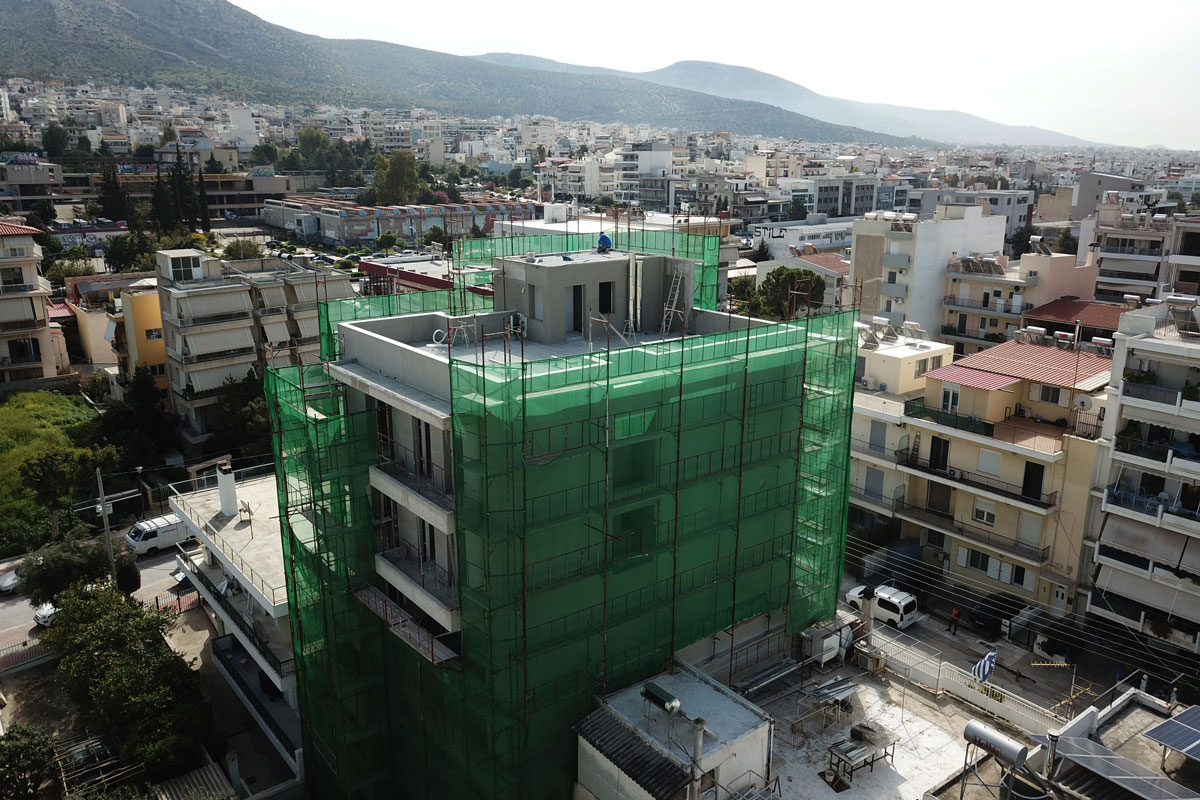 Σκαλωσιά στην περιοχή στον Άλιμο. Με μαδέρια και με λινάτσα.