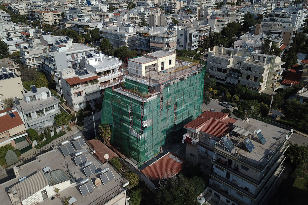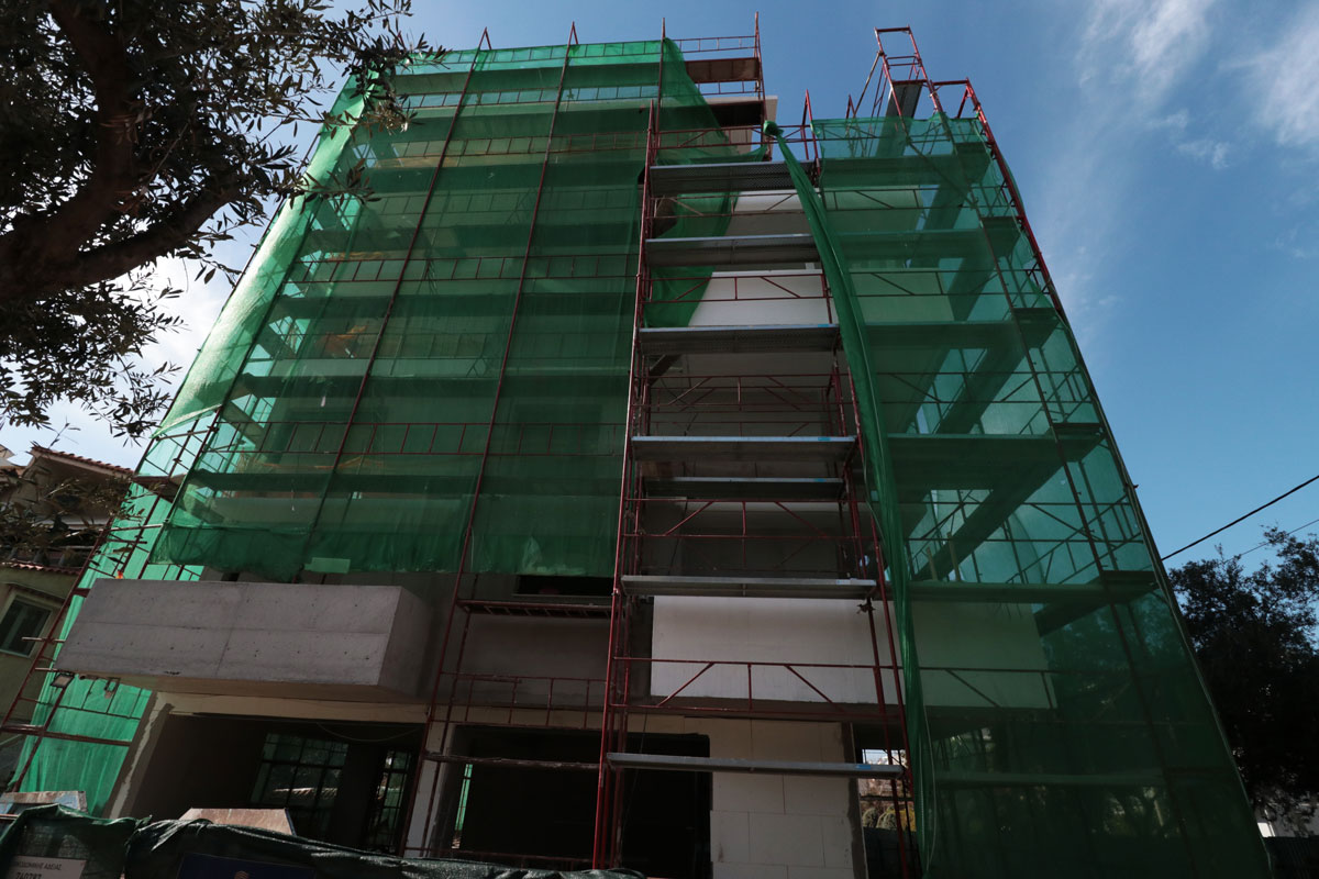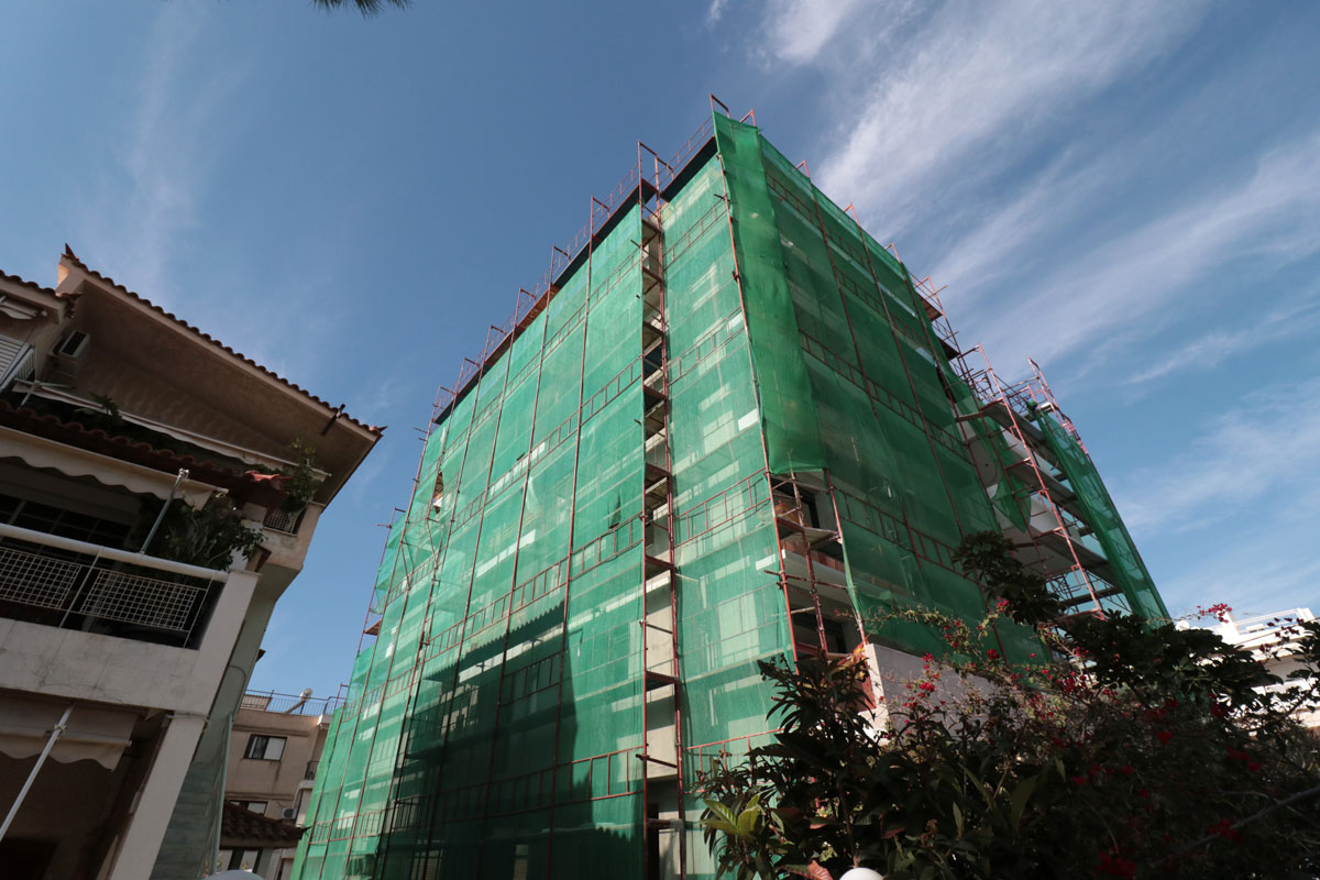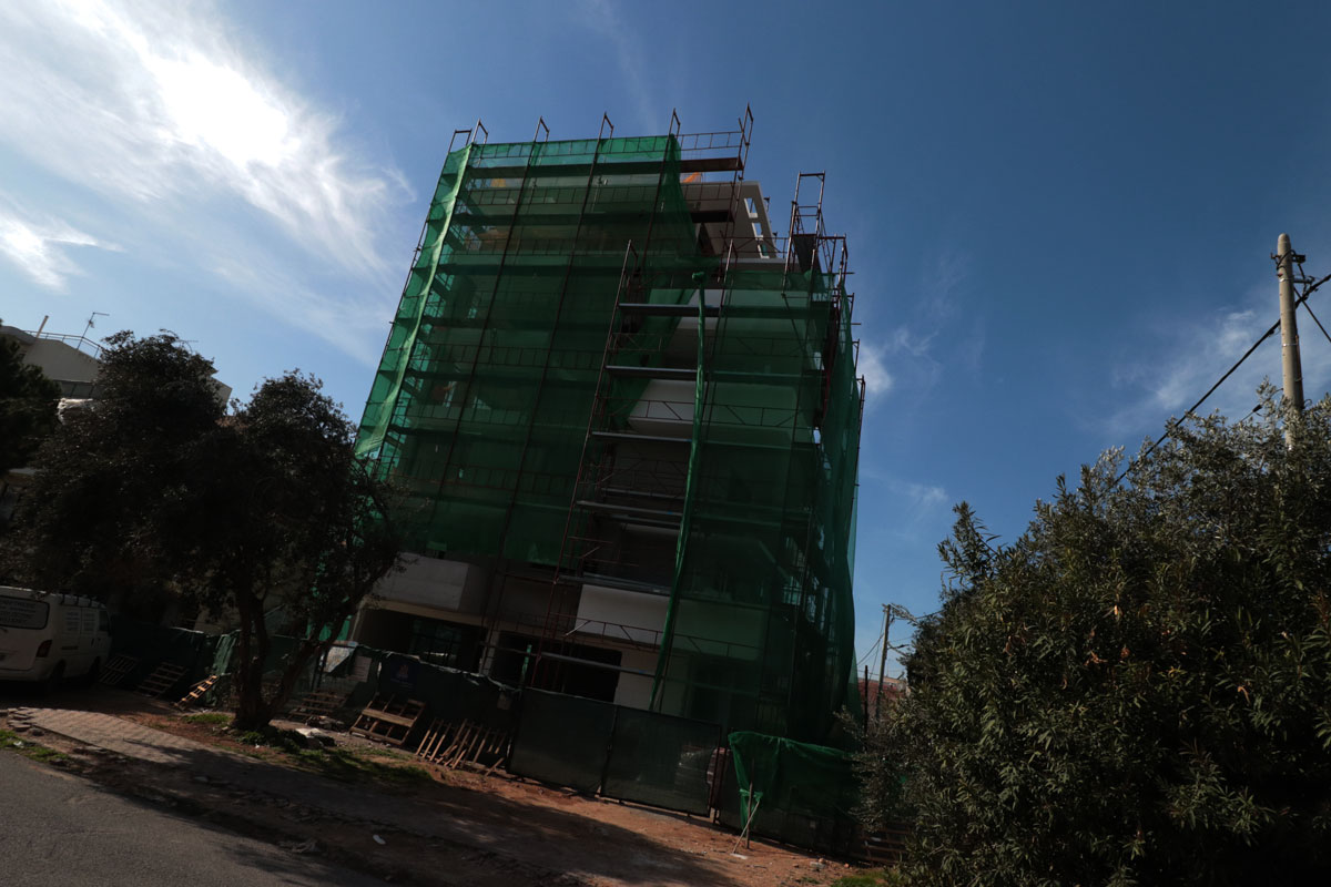 Η σκαλωσιά αυτή υλοποιήθηκε σε μια πολυόρωφη οικοδομή στην Γλυφάδα.