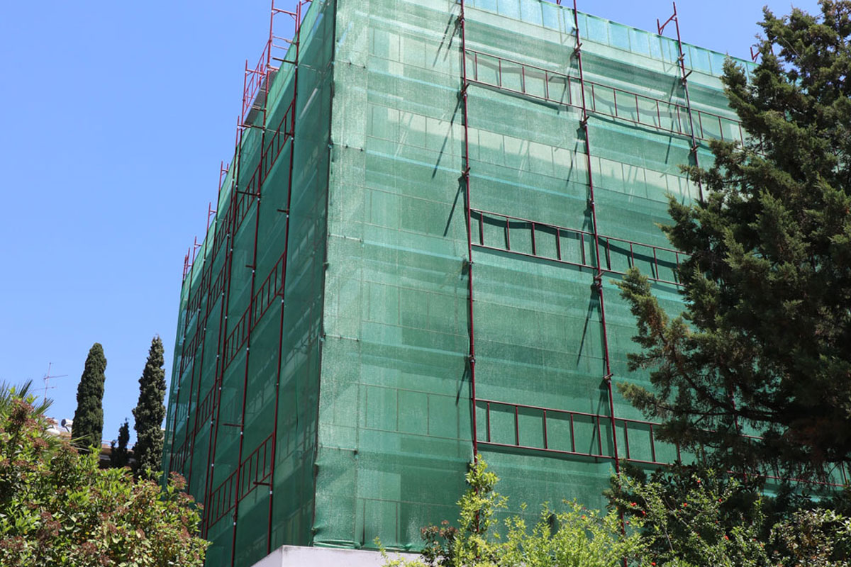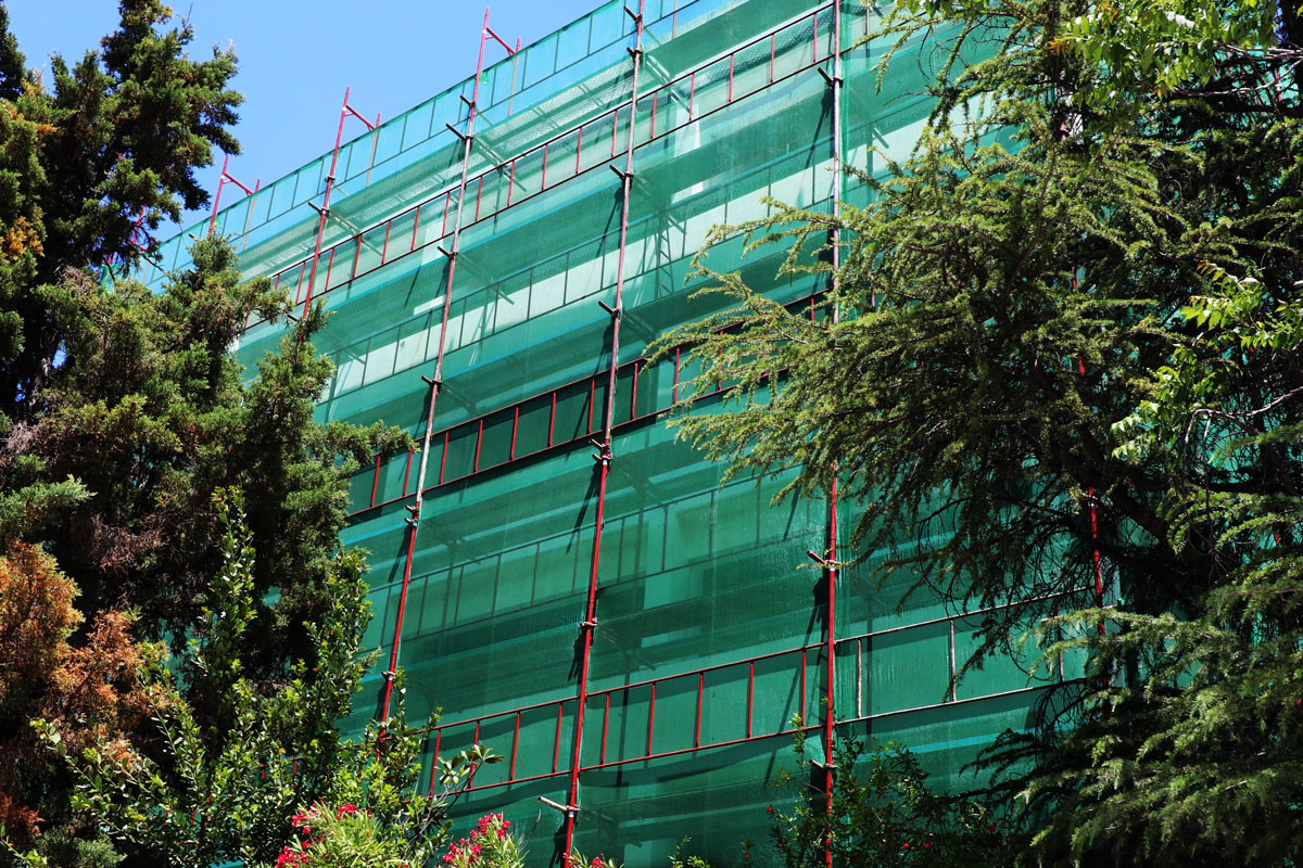 Η σκαλωσιά είναι κλιμακωτή τεχνική κατασκευή προσωρινής χρήσης, που συναντάται κυρίως, σε οικοδομικές εργασίες. Ο ρόλος της είναι διττός, λειτουργικός και προστατευτικός, ώστε να αποφεύγονται τα εργατικά ατυχήματα. Μπορεί να είναι κατασκευασμένη εξ’ ολοκλήρου από μέταλλο, η να αποτελεί συνδυασμό μεταλλικού σκελετού και ξύλινων σκαλοπατιών. Χρησιμοποιείται συνηθέστερα στην οικοδομή, προκειμένου να προσπελαστούν από τους εργατοτεχνίτες οι πλέον απρόσιτες επιφάνειες, αλλά μπορεί να συνιστά και μέσο εκτέλεσης εργασιών ανακαίνισης, συντήρησης ή και αναπαλαίωσης στο πλαίσιο εργασιών της Αρχαιολογικής υπηρεσίας ή του Υπουργείου Πολιτισμού. Μπορεί να συνοδεύεται από λινάτσα για την ασφάλεια και την προστασία των σκαλωσιών. Αυτό είναι ένα κτίριο γραφείων.