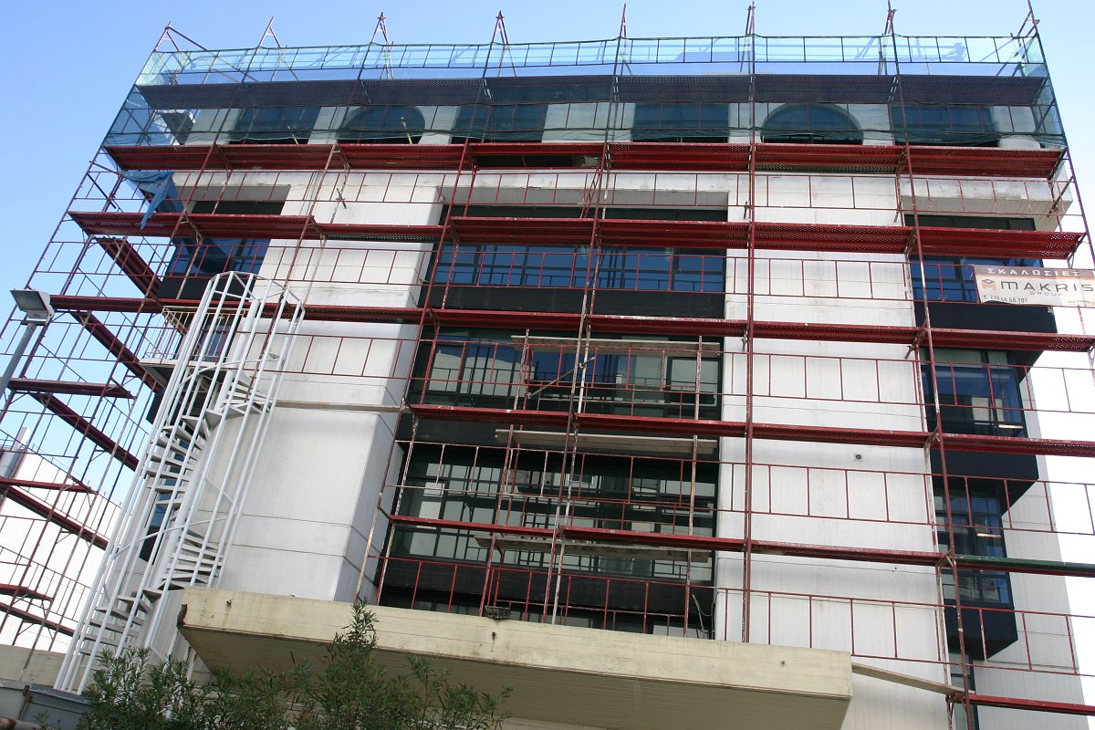 Τοποθέτηση σκαλωσιάς με Μεταλλικά Δάπεδα στις προσόψεις των γραφείων της εταιρίας για τις ανάγκες εξωτερικής αναμόρφωσης του κτηρίου.